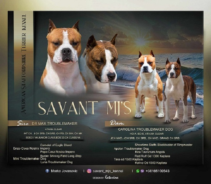 Looking for a faithful, energetic and affectionate pet? You are in the right place! Kennel Savant MJ's presents to you our new litter "P" of American Staffordshire Terrier, top international origin! Our puppies are well socialized, cheerful and ready to become members of your family. Exhibition potential! Available: 2 males and 4 females. Why choose our litter? Health: Puppies are regularly examined by a veterinarian, vaccinated and dewormed. Temperament: They are very kind and affectionate, ideal for families with children. Parents: Parents are of excellent characteristics and proven to be healthy. For any additional information, contact me on Viber and WhatsApp +38166100543 FB: Marko Jovanovic IG: Savant_mjs_kennel Obrenovac, Serbia ![]() | |