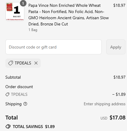 Use coupon code: TPDEALS and get 10% off your order from Papa Vince. ![]() | |