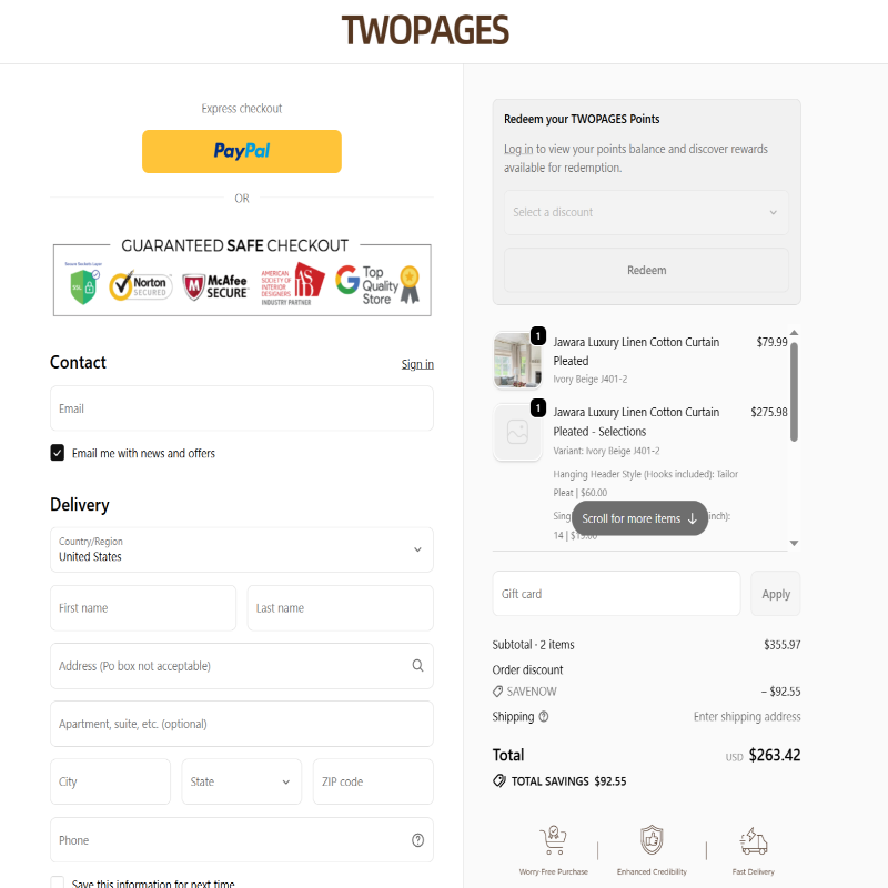 Save 26% OFF Your Total Purchase on Twopages Curtains | |