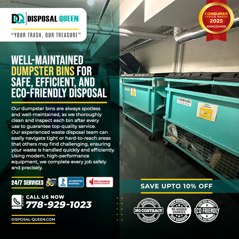Our dumpster bins are always spotless and well-maintained, as we thoroughly clean and inspect each bin after every use to guarantee top-quality service. Our experienced waste disposal team can easily navigate tight or hard-to-reach areas that others may find challenging, ensuring your waste is handled quickly and efficiently. Using modern, high-performance equipment, we complete every job safely and precisely. We take great pride in offering reliable, affordable, and transparent dumpster bin rental services—no hidden fees, no long-term commitments, just honest, hassle-free solutions. Proudly serving Vancouver, Richmond, Burnaby, Surrey, and nearby areas, we’re your trusted local partner for professional dumpster rentals and waste disposal, dedicated to helping homeowners, contractors, and businesses keep their sites clean and clutter-free. ![]() | |